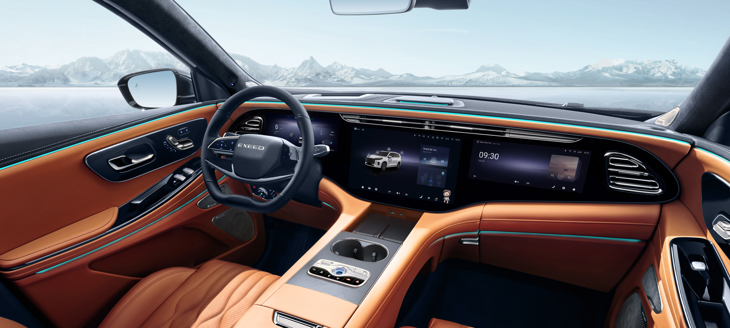 The interior of the EXEED VX offers exclusive comfort for everyone, thanks to premium materials and LEAR’s unique anatomically shaped leather seats
