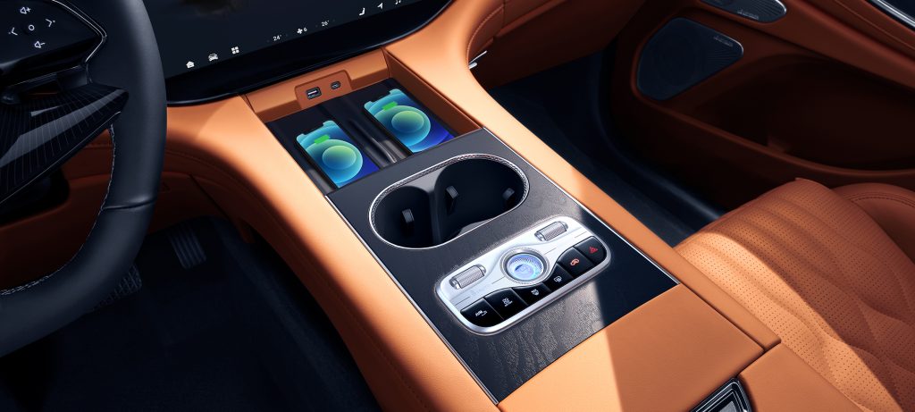 With the updated VX, you can forget about charging cables forever. Two Induction charging on the central tunnel will quickly feed the gadget: from now on you will always be online.